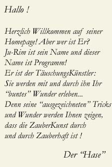 Herzlich Willkommen auf www.ju-rim.de der offiziellen Website des Täuschungskünstlers Ju-Rim.......